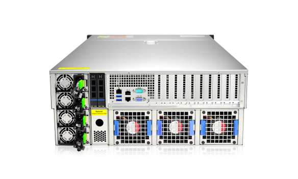 此次展会展出的Gooxi Intel Whitley 双路4U10卡GPU服务器让不少参观者眼前一亮。它兼顾了高性能、高扩展性及高稳定特性,给予强大的磁盘和I/O扩展能力,满足流媒体对服务器从性能到扩容的多种应用需求。它支持1/2颗第三代英特尔至强® 可扩展系列处理器,支持整机最大17个PCIe槽位。强劲的性能和灵活的结构满,有效提升了数据分析和处理效率,广电行业业务多样化应用配置需求,更为客户后续不断增加的应用需求给予了充分的弹性扩容空间,最大化客户服务器基础设施投资效益。它前置最大支持4个3.5″ /2.5″ SAS/SATA热插拔硬盘,后置标配2个2.5″ SAS/SATA盘(可选配U.2模组),选配后置增加2个2.5″ SAS/SATA或U.2硬盘,其中GPU搭载多种AI 算法可以实现智能化功能。